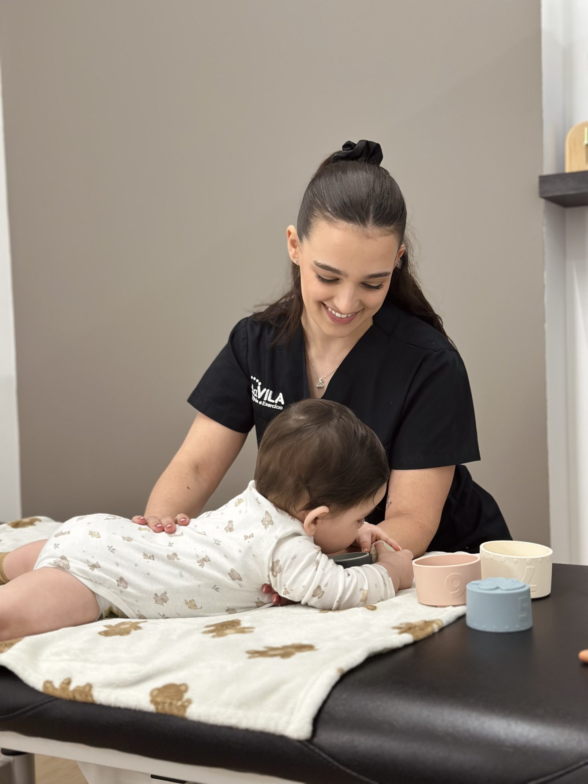 A fisioterapeuta identifica e trata pequenas disfunções que podem impactar o conforto, o bem-estar e o desenvolvimento do bebé e da criança.